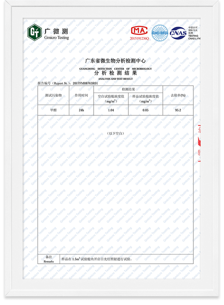 除醛精靈甲醛去除率檢測報告