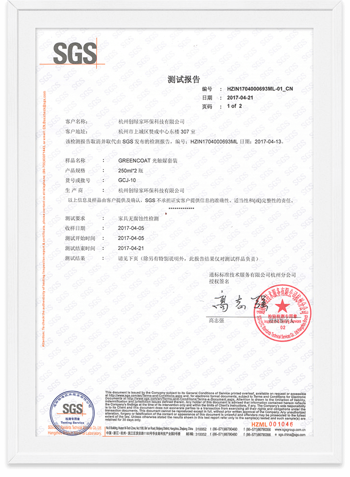 光觸媒家具無腐蝕性檢測報告