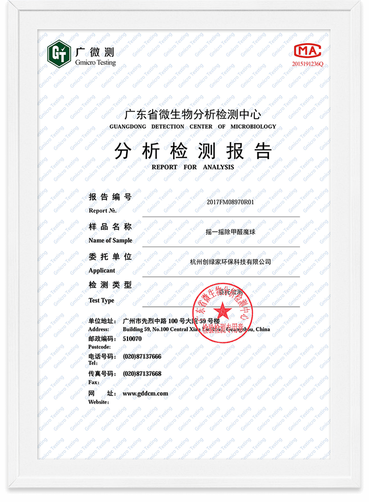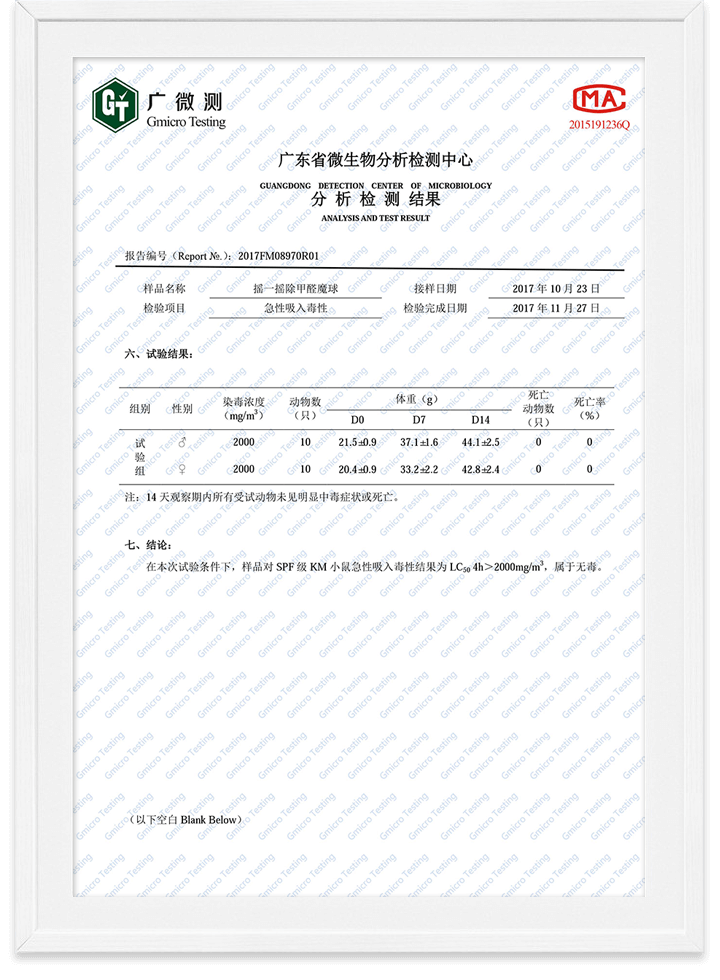 除甲醛魔球無毒檢測報告