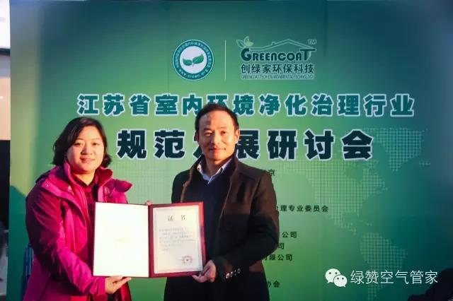 最后,凈化委向創(chuàng)綠家環(huán)??萍碱C發(fā)了“蓓蕾健康空氣行動(dòng)”江蘇省執(zhí)行單位證書。