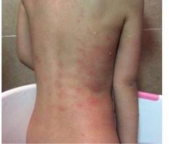 起初,張女士也沒有太重視。不久后孩子就開始咳嗽,并且眼睛通紅,經(jīng)常擦眼睛,流淚,后來身上還起了一片片的紅斑。