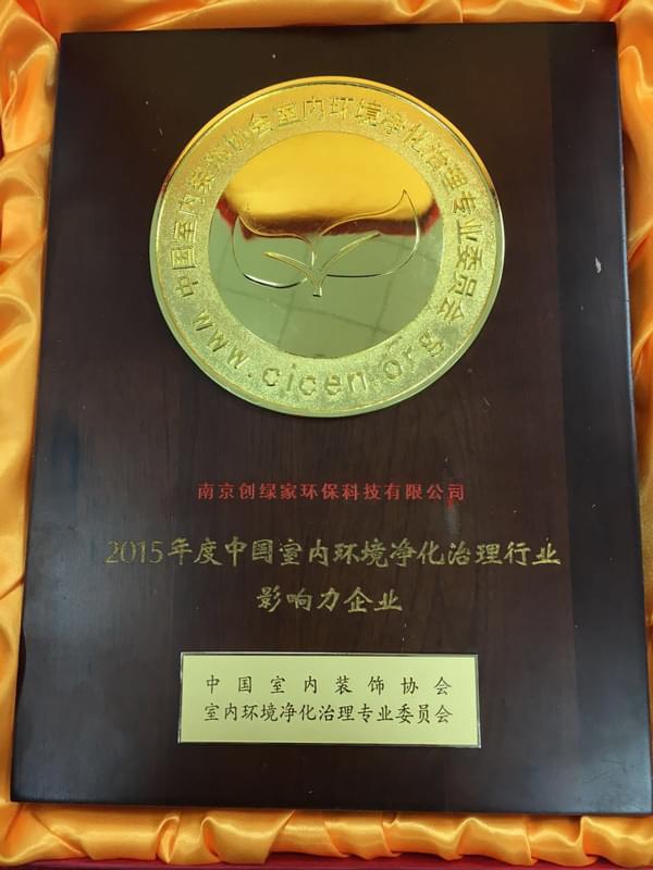 創(chuàng)綠家--2015年度中國室內(nèi)環(huán)境凈化治理行業(yè)影響力企業(yè)!