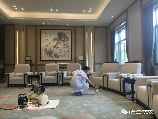 先配合高溫熏蒸機(jī)對(duì)地毯表面進(jìn)行高溫熏蒸清潔,在用“GREENCOAT”織地毯除味劑、“GREENCOAT”復(fù)合光觸媒對(duì)地毯進(jìn)行均勻噴涂,噴涂的流程順序、藥劑用量均需要工程師根據(jù)實(shí)際情況合理施工。